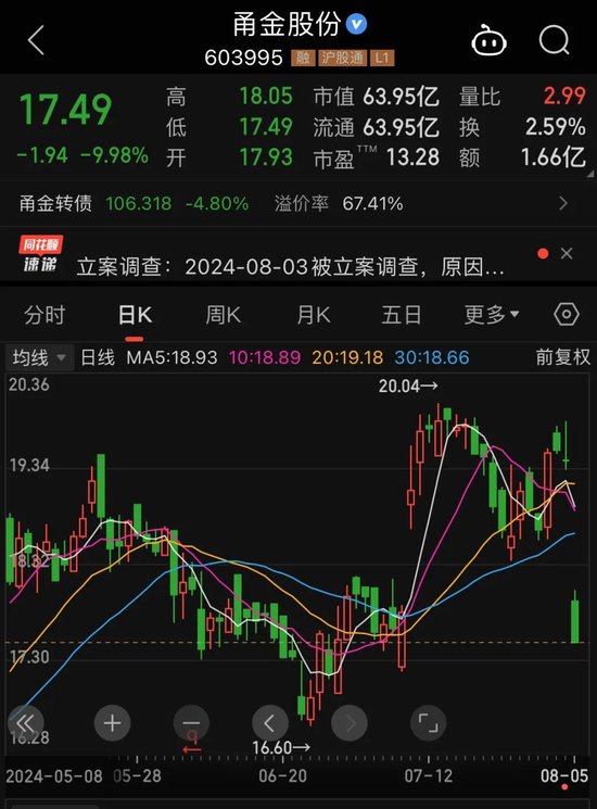 因涉嫌内幕交易、短线交易,甬金股份实控人曹佩凤被中国证监会立案调查。消息披露后,公司股价应声跌停。